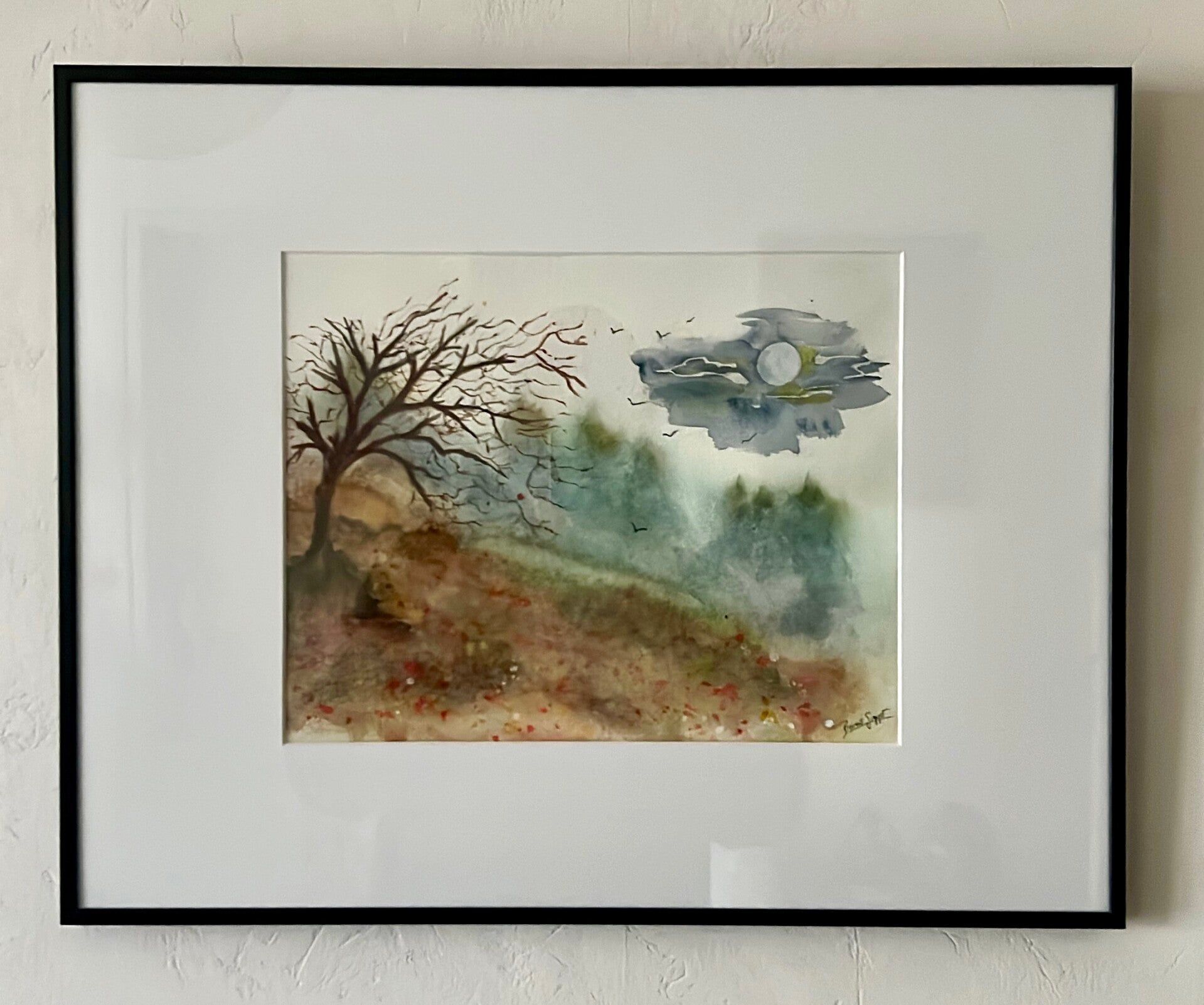 Aquarelle encadrée sous verre. 40 x 50 cm